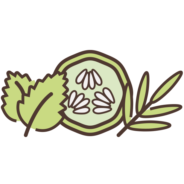 Cucumbers are very high in water content and known for promoting a cooling effect, nourishing and soothing the skin. Rosemary Oil and Peppermint Extract are known for their aromatic properties that provide a refreshing, weightless sensation.